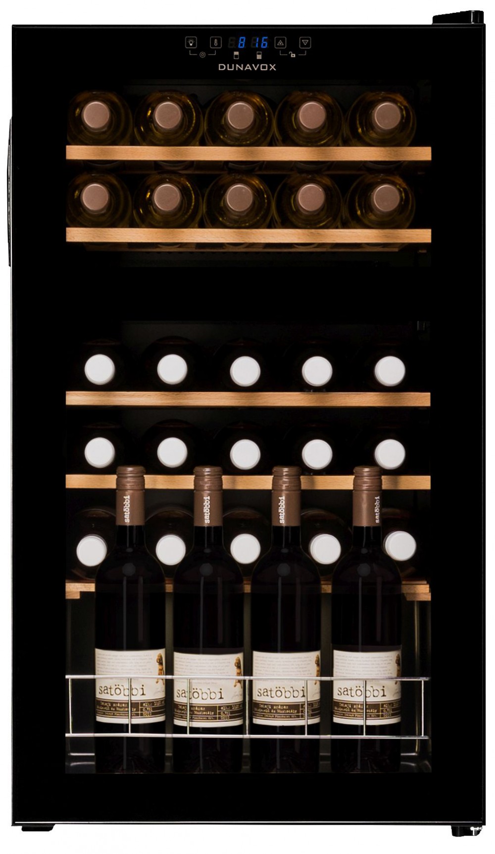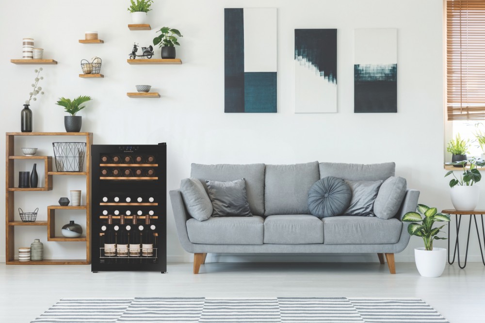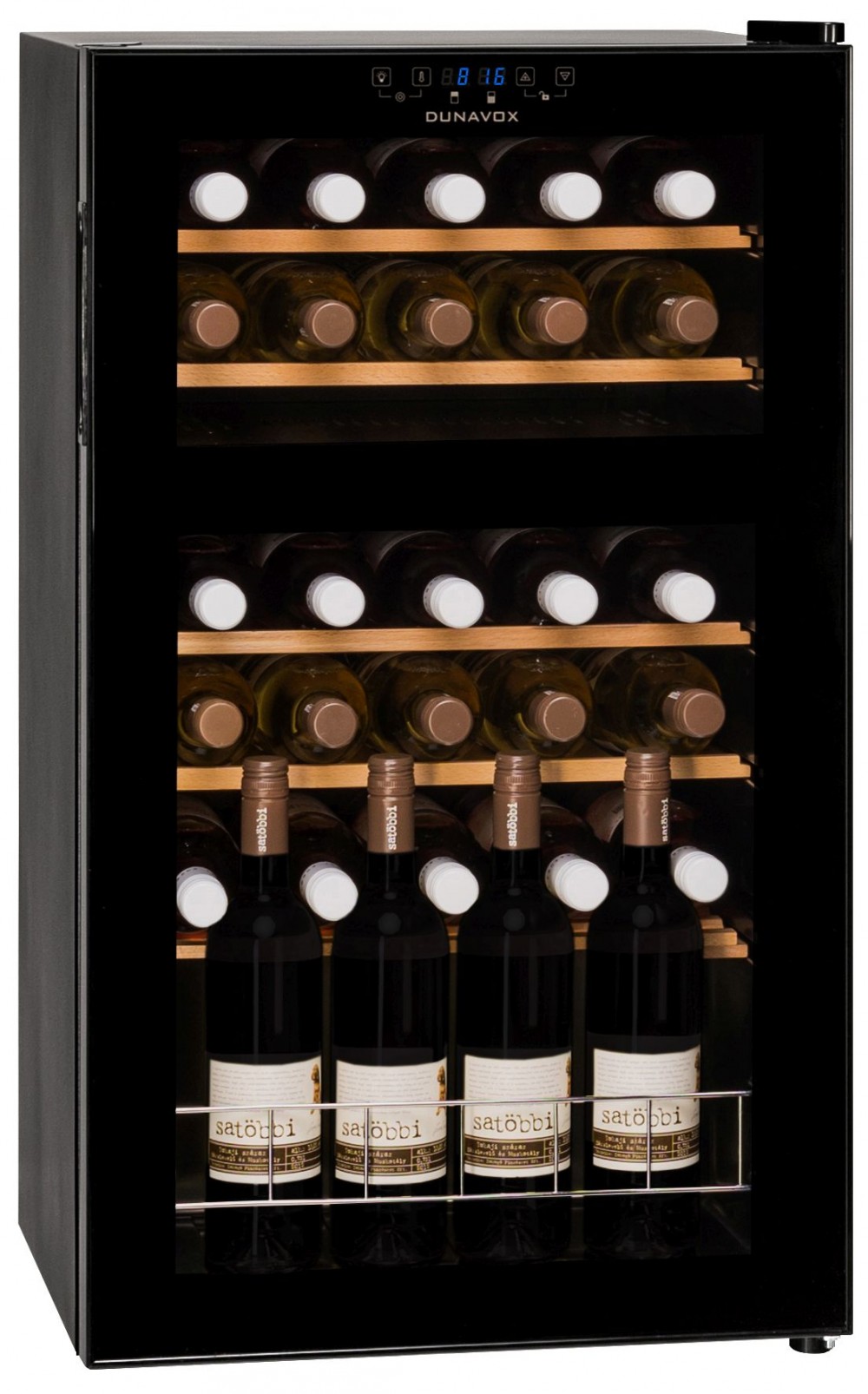 - Az enyhén színezett UV védelemmel ellátott teleüveg ajtó kiváló rálátást biztosít a borokra.